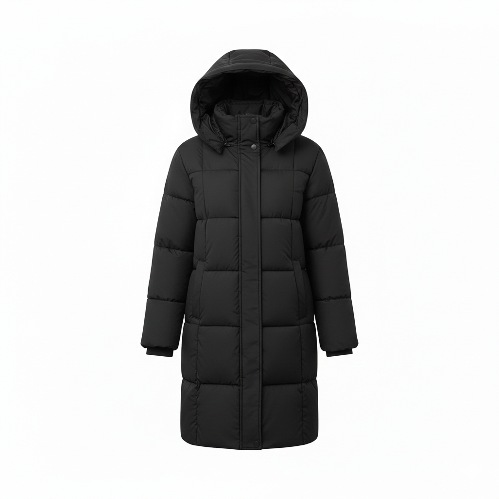 Styl: Dlouhá zimní bunda s kapucí